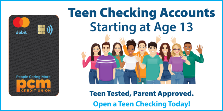 Is your teen ready for the next step? Whether it’s for a cashless school trip or building smart spending habits, a PCMCU Teen Checking could be the perfect solution. When you’re ready to open your account with your teen, you’ll meet with a PCMCU expert to help educate your teen about using their debit card and meet them on their journey toward financial independence.